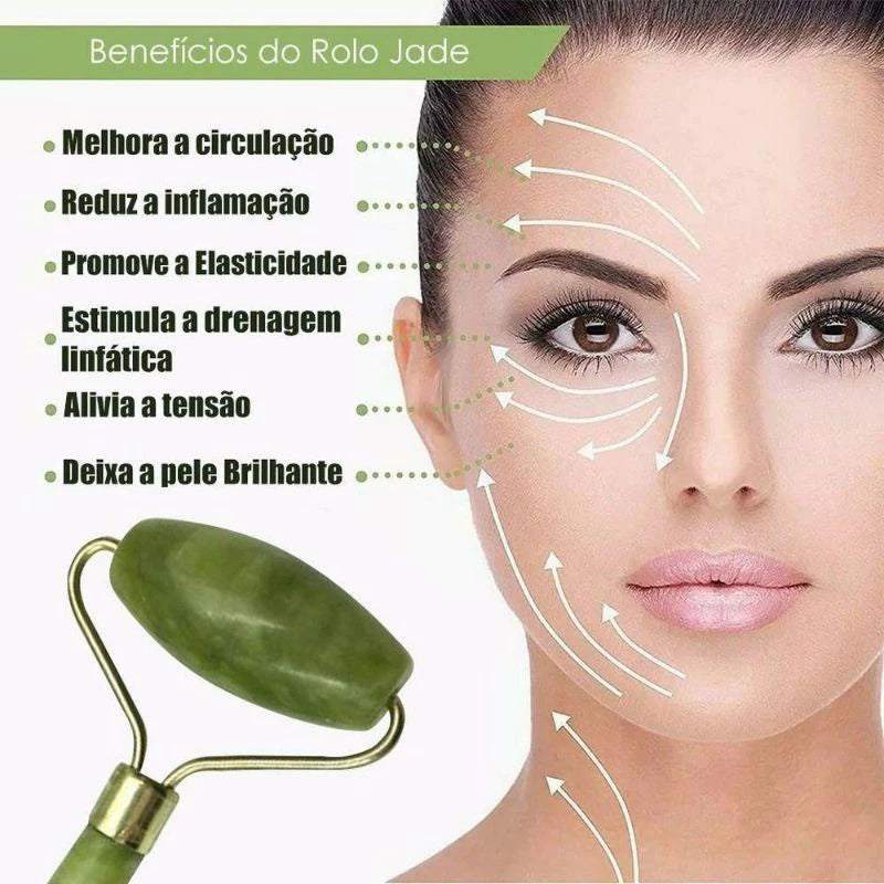 Porque sua pele merece um momento de autocuidado digno de spa! O Massageador Facial Roller de Jade com Gua Sha é perfeito para quem busca relaxamento, pele mais firme e um glow natural. Feito com pedra jade de alta qualidade, ele proporciona uma sensação refrescante, melhora a circulação e ajuda a reduzir linhas de expressão, transformando sua rotina de beleza em um verdadeiro ritual de bem-estar.