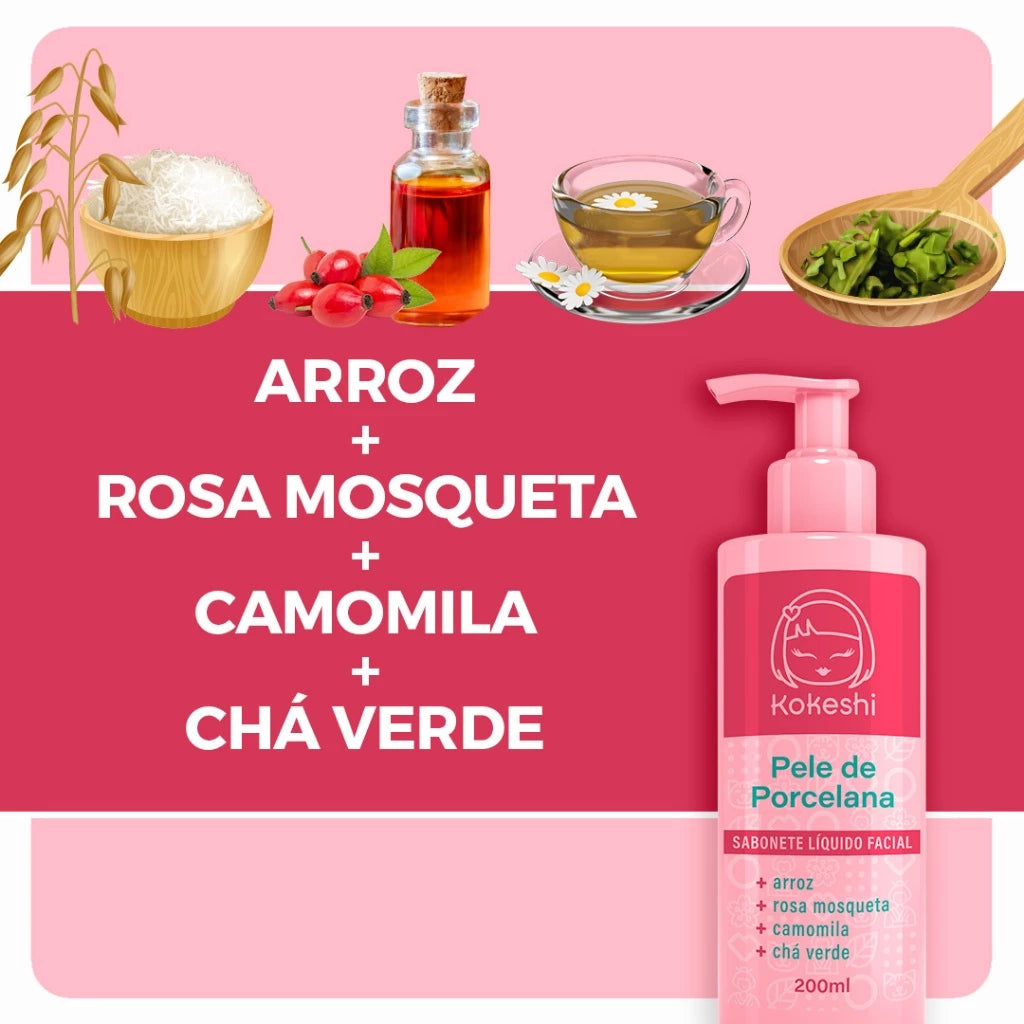 Transforme sua rotina de skincare com o Sabonete Líquido Facial Pele de Porcelana Kokeshi e conquiste uma pele mais saudável, equilibrada e radiante todos os dias!