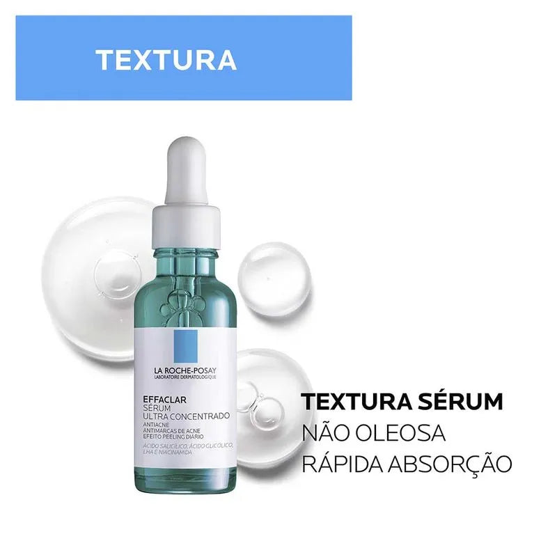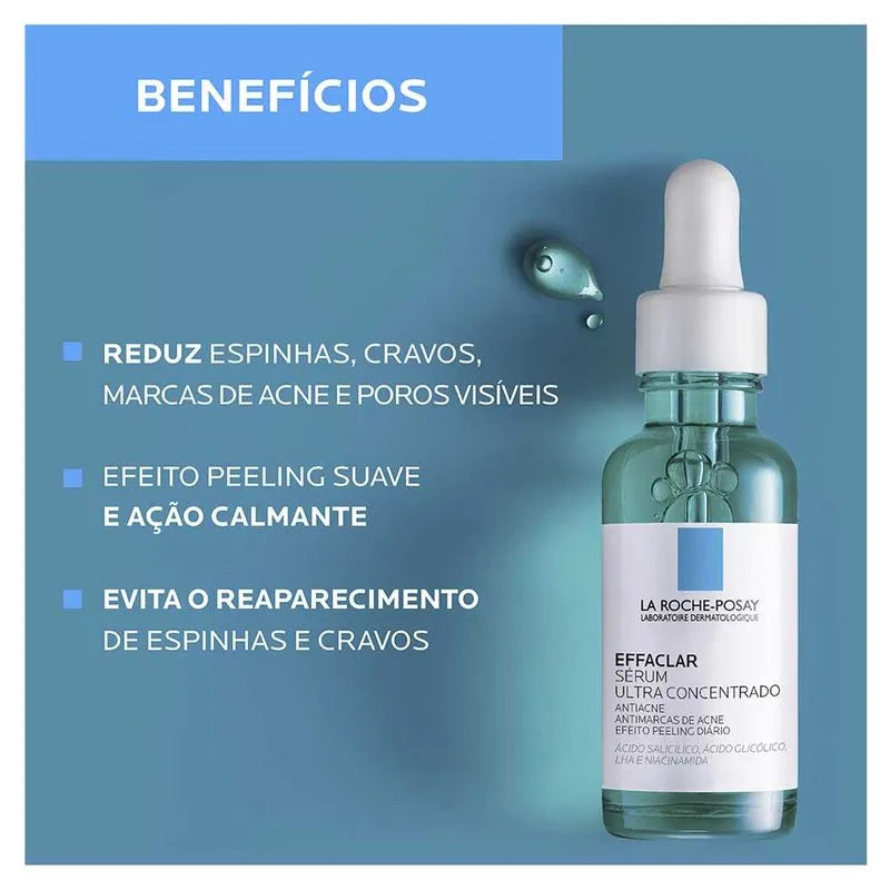 Porque controlar a acne sem ressecar a pele é possível! O Effaclar Sérum Ultra Concentrado oferece um tratamento completo com efeito peeling diário que atua desde o primeiro uso. Reduz espinhas, marcas, cravos e poros dilatados com suavidade e alta performance.
