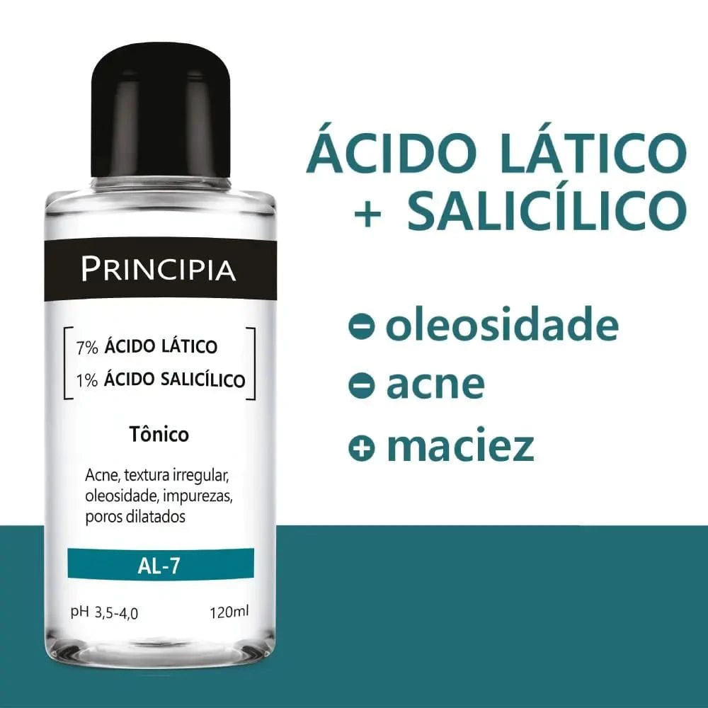 Porque sua pele merece um cuidado poderoso e gentil ao mesmo tempo. O Tônico AL-7 da Principia combina 7% de Ácido Lático com 1% de Ácido Salicílico para renovar, purificar e devolver a maciez à pele — tudo isso sem agredir. É a escolha perfeita para quem quer controlar a oleosidade, suavizar imperfeições e manter a textura da pele uniforme e saudável.