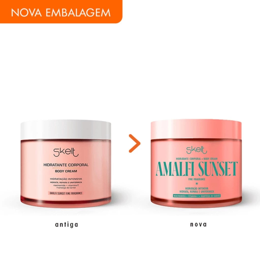 O Hidratante Corporal Skelt Amalfi Sunset é a escolha perfeita para quem ama uma pele radiante, profundamente hidratada e com um toque sofisticado de perfume. Sua fórmula luxuosa combina Niacinamida, Vitamina E e Manteiga de Karité — ativos poderosos que promovem renovação celular, ação antioxidante e nutrição intensa.