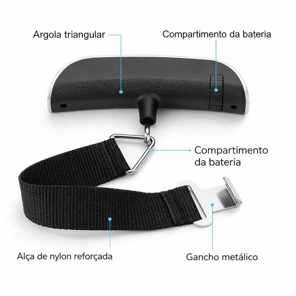 Perfeita para quem viaja com frequência, a balança ajuda a controlar o peso da bagagem antes de sair de casa, evitando taxas extras e imprevistos. Seu gancho resistente permite pesar malas de forma segura e prática em poucos segundos